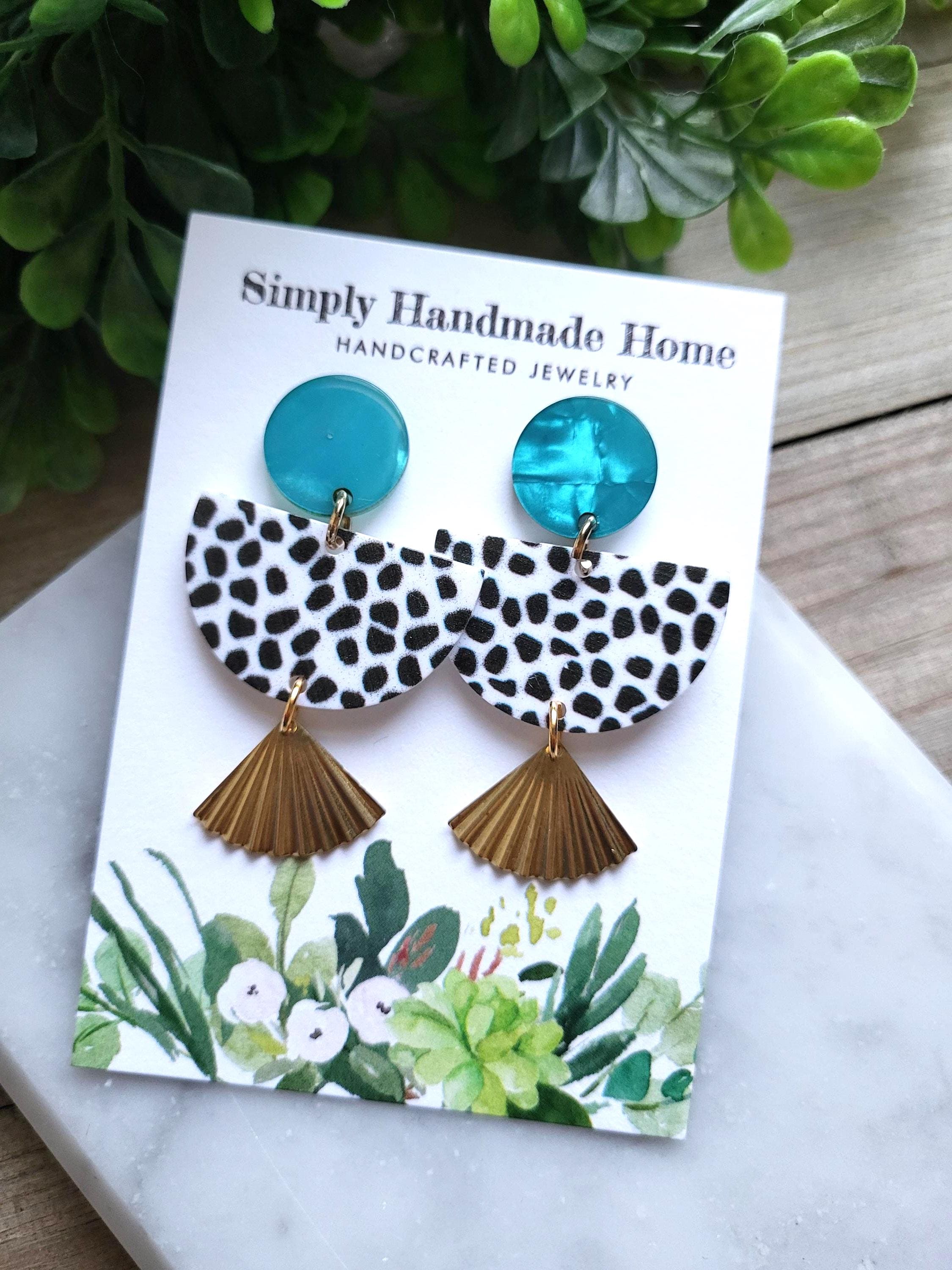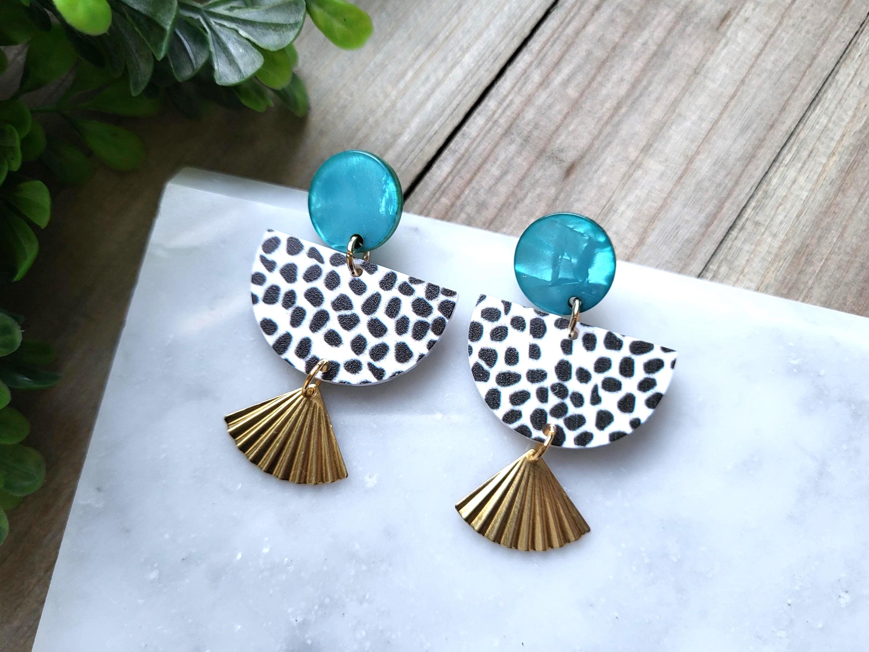 Such a Fun pair of Colorful Chunky Acrylic Earrings. The earrings feature fun bold abstract design on them. These earrings are lightweight and comfy to wear all day!